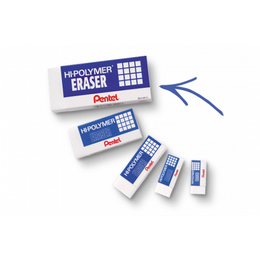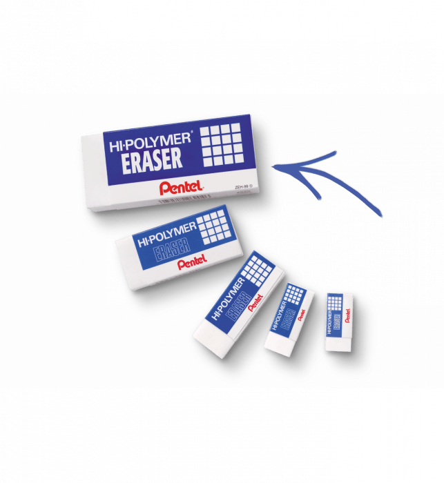 Bardzo popularna na całym świecie gumka ołówkowa Hi-Polymer. Wyjątkowo giętka i miękka, działa bez potrzeby mocnego dociskania do powierzchni. Nie narusza struktury papieru, pozostawia zeszyty, dokumenty oraz notatki w doskonałym stanie. Nie pęka, nie twardnieje, nie brudzi się. Pozostawia małą ilość ścinek. Nie zawiera szkodliwych substancji. Jest bezpieczna dla dzieci.