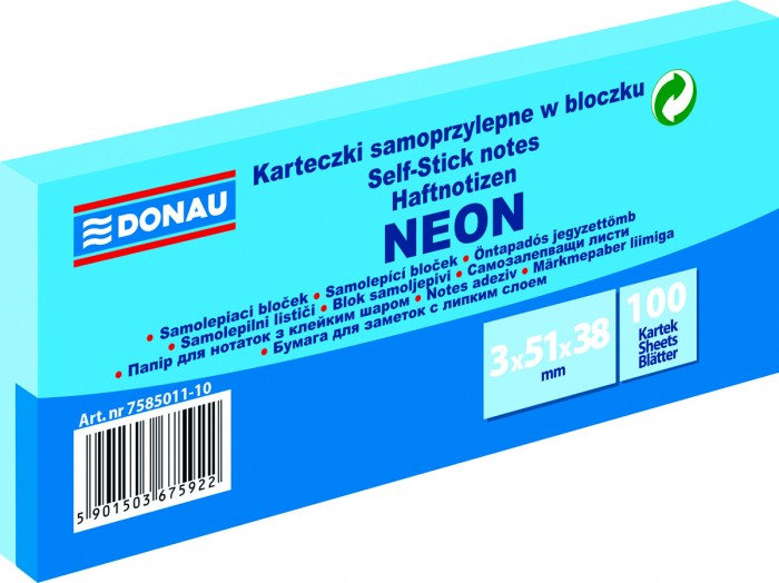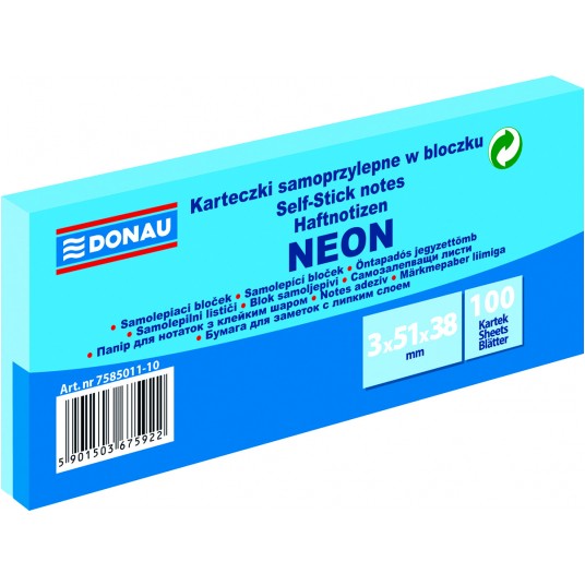 Karteczki samoprzylepne Donau 38 x 51 mm niebieski neon