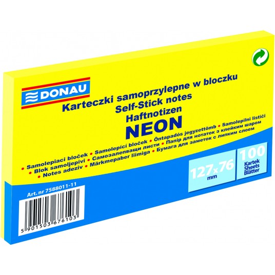 Karteczki samoprzylepne Donau 127 x 76 mm żółty neon