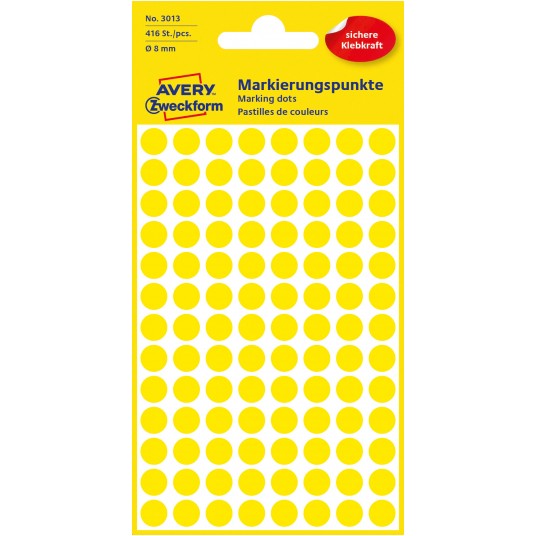 Kolorowe kółka do zaznaczania Avery Zweckform, 416 etyk./op., średnica 8 mm, żółte