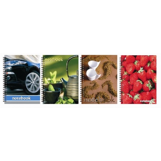 – twarda oprawa – podwójna metalowa spirala – liniatura: kratka – strony perforowane, z marginesem, dziurkowane – kolorowe indeksy – format B5 – 100 kartek