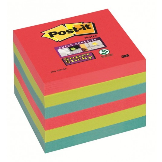 Kolorowe karteczki samoprzylepne Post-it® Super Sticky to innowacyjne rozwiązanie na codzienne zarządzanie zadaniami i priorytetami. Dzięki kolorom świetnie się wyróżniają, dzięki Super Sticky trzymają się w każdym miejscu. Kolekcja 3 wyjątkowych kolorów karteczek: Koralowo Czerwone, Limonkowo Zielone, Lazurowo Niebieskie. Korzystaj z różnych kolorów i rozmiarów do tworzenia własnej hierarchii ważności zadań lub kodowania zagadnień. 2x większa siła kleju Super Sticky vs klasyczne karteczki Post-it®. Super Sticky możesz przyklejać i odklejać na każdej powierzchni - bez obawy, że Twoja karteczka spadnie. Idealne przy biurku jak i na "trudnych" dla zwykłych karteczek samoprzylepnych pionowych powierzchniach takich jak ściany, meble i okna - zawsze trzymają się mocno, odklejają bez uszkadzania powierzchni i bez śladu kleju - nawet przy wielokrotnym użyciu. Grubszy papier w 100% z pulpy drzewnej, po którym wygodnie jest pisać m.in. długopisem, ołówkiem, cienkopisem, piórem. Rozmiar 76 x 76 mm to najpopularniejsze karteczki uniwersalnego zastosowania. Każdy notes samoprzylepny Post-it® posiada certyfikat PEFC, który potwierdza zrównoważone źródła pozyskania surowców - kupując dbasz o naszą planetę. Super mocny klej Super Sticky w 60% wyprodukowano z surowców roślinnych - mniejsze wykorzystanie pochodnych ropy naftowej w przeciwieństwie do produktów innych marek. Używasz karteczek Post-it® Super Sticky na spotkaniu i czas się kończy? Bez obaw! Pracę możesz kontynuować z aplikacją Post-it® - zrób zdjęcie i zarządzaj pomysłami online, dziel się nimi z ludźmi na całym świecie, twórzcie nowe koncepcje, które pomogą Wam osiągnąć jeszcze więcej. Do pobrania bezpłatnie w App Store i Google Play. Papier o gramaturze 74 g/m2 z certyfikatem PEFC CH18/0914, bielony bez użycia chloru gazowego. Super mocny klej repozycjonowalny 3M w technologii mikrosferycznej, w 60% z roślin. Po użyciu produkt nadaje się do recyklingu. Opakowanie zawiera 6 bloczków po 90 karteczek w rozmiarze 76 x 76 mm w zjawiskowych kolorach archipelagu Bora Bora.