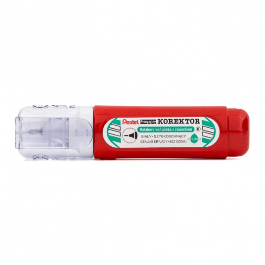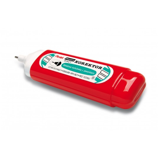 Klasyczny korektor z płaską obudową. Cienka, okrągła końcówka do precyzyjnego tuszowania najmniejszych błędów. Końcówka zaworkowa przepuszcza dokładnie wymierzoną ilość płynu i się nie zaciera (w przeciwieństwie do modeli z popularną końcówką kulkową). Szybkoschnący tusz korygujący gwarantuje gładkie i błyskawiczne pisanie już w chwilę po użyciu korektora. Pojemność wynosi 12 ml. Nasadka z wygodnym klipem zabezpiecza przed wysychaniem. Może być stosowany jako biały marker, do dekorowania. Doskonały do codziennego użytku w domu, szkole, w biurze i pracowni.