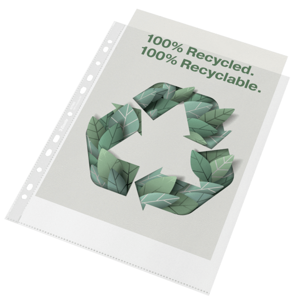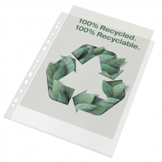 Ekologiczna koszulka na dokumenty A4 MAXI do codziennego użytku, wykonana z bardzo mocnego PP w 100% pochodzącego z recyklingu. Pasek z multiperforacją umożliwia wygodne przechowywanie dokumentów we wszystkich rodzajach segregatorów. Mieści więcej arkuszy papieru A4 niż standardowe koszulki, do 80 kartek. Cały produkt można ponownie wykorzystać i poddać recyklingowi. Jest zapakowany w kartonowe pudełko, które również pochodzi w 100% z recyklingu i nadaje się do ponownego przetworzenia. Wyprodukowano w Europie. Zawartość pochodząca z recyklingu potwierdzona przez certyfikat UL. Bardzo wytrzymały PP 100 mikronów. Pudełko zawiera 100 sztuk.
