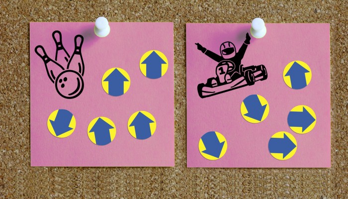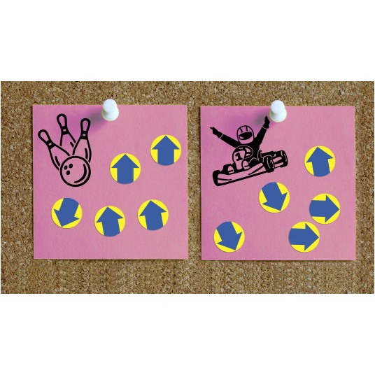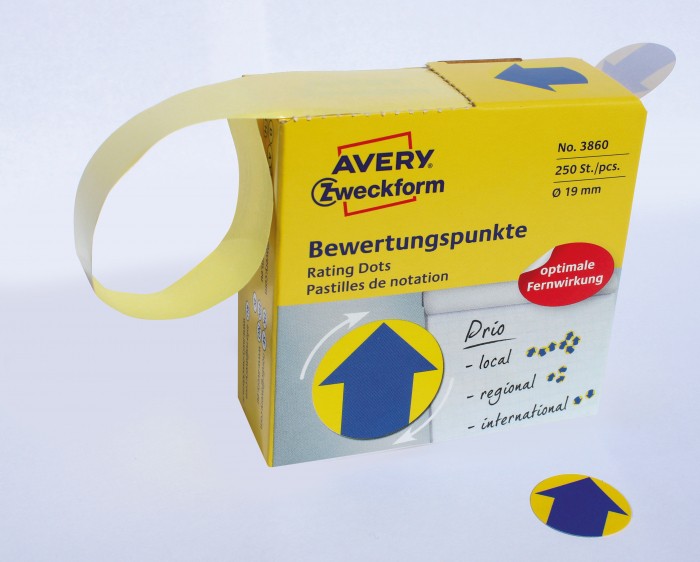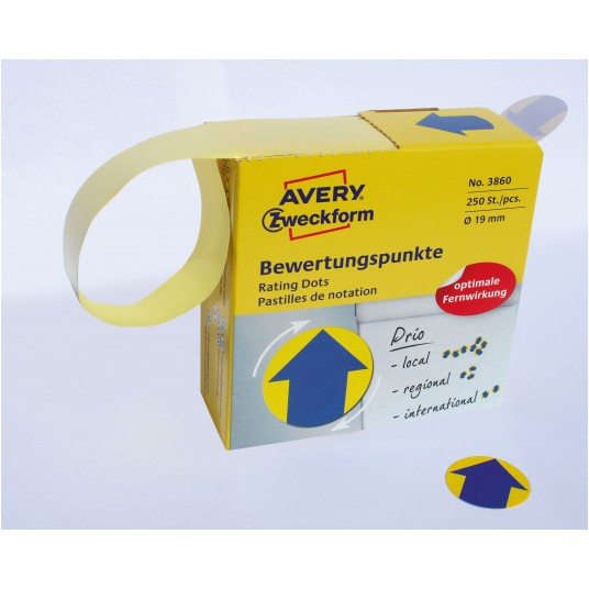 Kółka z symbolami do zaznaczania w dyspenserze 'Strzałka' Avery Zweckform, trwałe, 250 szt./rolka, średnica 19 mm, żółto-niebiskie