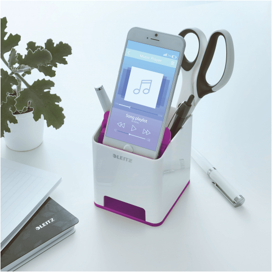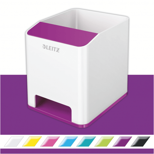 Kubek na długopisy Leitz WOW dwukolorowy ze wzmacniaczem dźwięku biało-fioletowy