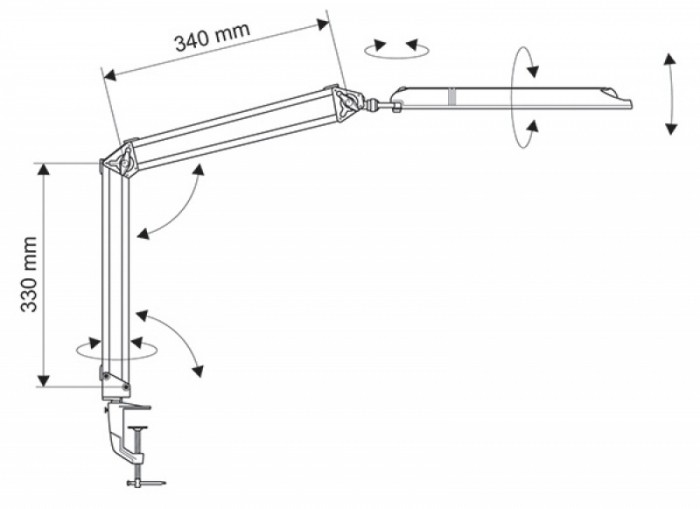 - stabilna podstawa z wewnętrznym obciążeniem, rozmiar: 20 x 14,5 cm, długość ramienia: dolnego 34 cm, górnego: 33 cm, rozmiar głowicy: około 36 x 7 cm, wysokość robocza: 45 cm
