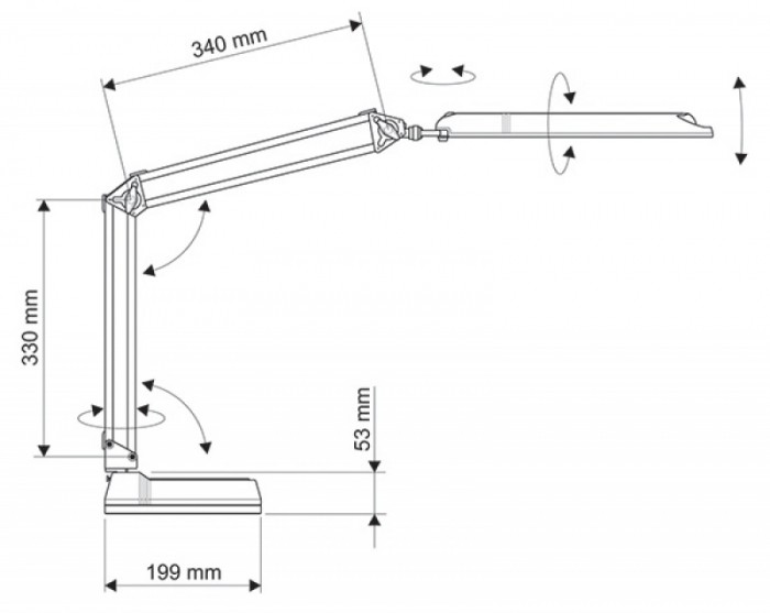 - stabilna podstawa z wewnętrznym obciążeniem, rozmiar: 20 x 14,5 cm, długość ramienia: dolnego 34 cm, górnego: 33 cm, rozmiar głowicy: około 36 x 7 cm, wysokość robocza: 45 cm