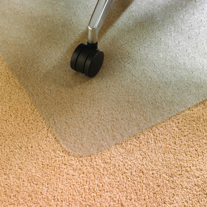 Mata ochronna wykonana z mocnego POLICARBONU. Trwała i odporna na zniszczenia zgodnie z normą DIN EN 425 dla środków ochrony indywidualnej. Nie zawiera PCV ani szkodliwych ftalanów, których obecność w przedmiotach codziennego użytku może być przyczyną wielu schorzeń. Odpowiednia dla alergików. Mata jest odporna na uderzenia i ścieranie, cechuje ją wysoka przejrzystość, nie wykazuje tendencji do żółknięcia. Skutecznie chroni podłogę przed zniszczeniem na skutek przesuwania krzesła w tym samym miejscu. Wycisza hałas kółek toczących się po podłodze. Bezpieczne zaokrąglone narożniki zabezpieczają przed potknięciem. Spód z wypustkami stabilizującymi matę względem miękkiego podłoża (dywanu/wykładziny), wierzch z fakturą. Znajduje zastosowanie w biurze i w domu, nadaje się do ogrzewania podłogowego.