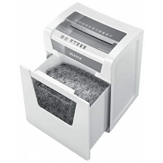 Niszczy do 10 kartek A4 jednocześnie- przeznaczona do sporadycznego używania w biurze; Technologia zapobiegania zacięciom zapewnia bezproblemową pracę niszczarki- urzędzenie zatrzymuje się automatycznie i cofa papier, jeżeli w podajniku umieszczono zbyt wiele arkuszy;Może pracować przez 120 minut bez przerwy, co gwarantuje mniej przerw w pracy;Dotykowy panel sterowania-łatwa, intuicyjna obsługa urządzenia; Łatwy do opróżniania 23- litrowy pojemnik na ścinki - pomieści do 225 pociętych kartek; Niszczy też zszywki i spinacze; 2 lata + 1 rok gwarancji - zarejestruj urządzenie aby przedłużyć gwarancję o rok; Poziom bezpieczeństwa P5