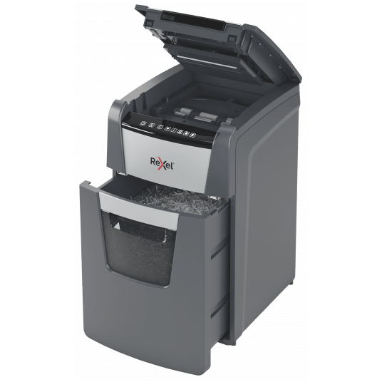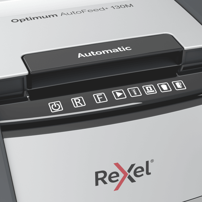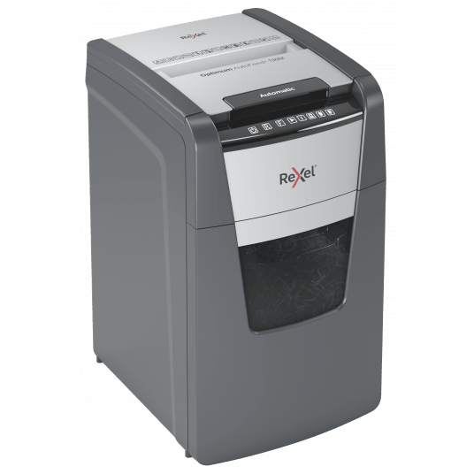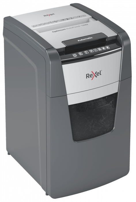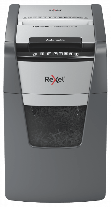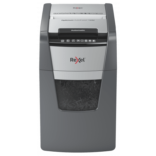 Niszczarka automatyczna do papieru Optimum AutoFeed+ 130M jednorazowo niszczy automatycznie do 130 kartek A4 (80 gsm), tnąc arkusze na mikrościnki (o wymiarach 2 x 15 mm), co zapewnia poziom bezpieczeństwa P-5. Wyposażona jest w automatyczny podajnik i 44-litrowy pojemnik na ścinki, co sprawia, że idealnie nadaje się do użytku biurowego. Nie wymaga ręcznego podawania papieru ani wcześniejszego usuwania zszywek i spinaczy - ta automatyczna niszczarka całą pracę wykona za Ciebie.