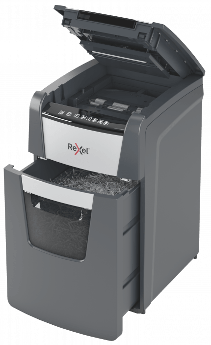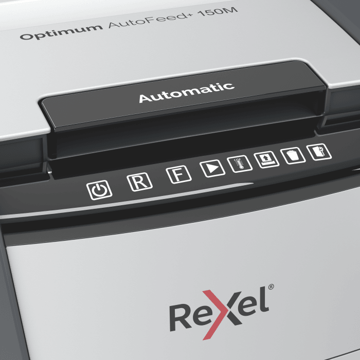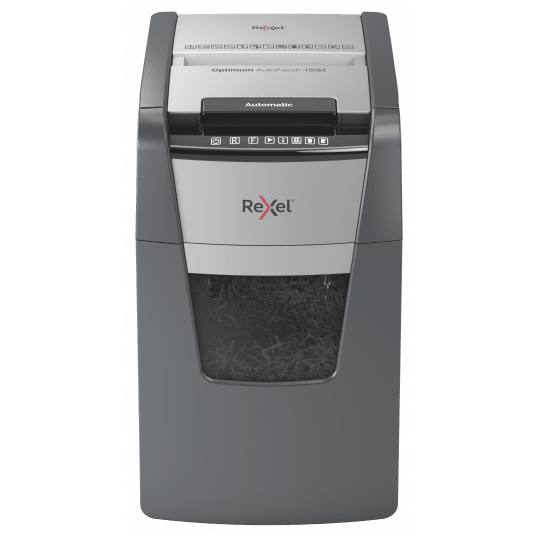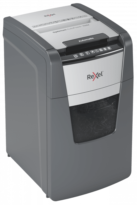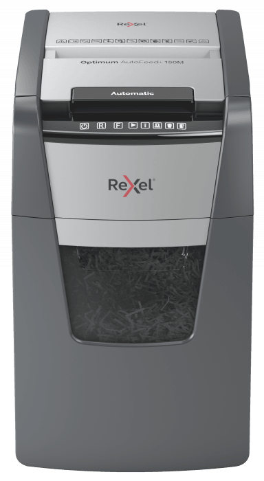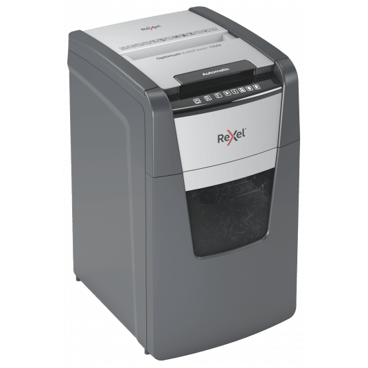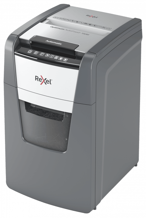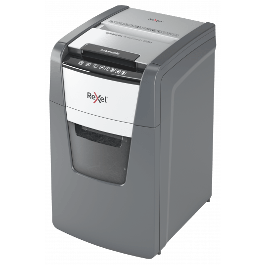 Niszczarka automatyczna do papieru Optimum AutoFeed+ 150M jednorazowo niszczy automatycznie do 150 kartek A4 (80 gsm), tnąc arkusze na mikrościnki (o wymiarach 2 x 15 mm), co zapewnia poziom bezpieczeństwa P-5. Wyposażona jest w automatyczny podajnik i 44-litrowy pojemnik na ścinki, co sprawia, że idealnie nadaje się do użytku biurowego. Nie wymaga ręcznego podawania papieru ani wcześniejszego usuwania zszywek i spinaczy - ta automatyczna niszczarka całą pracę wykona za Ciebie.