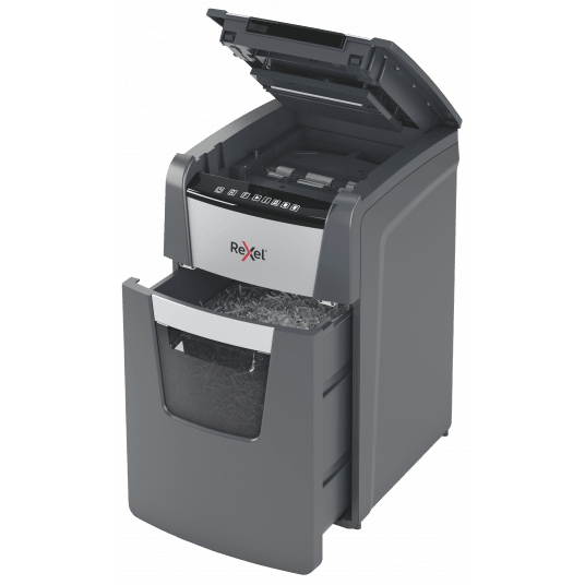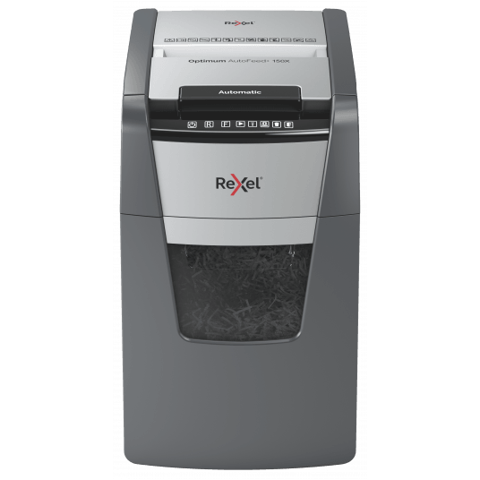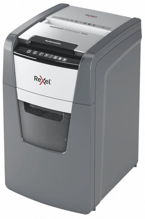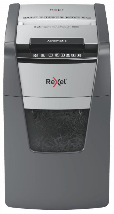 Niszczarka automatyczna do papieru Optimum AutoFeed+ 150X jednorazowo niszczy automatycznie do 150 kartek A4 (80 gsm), tnąc arkusze na konfetti (o wymiarach 4 x 28 mm), co zapewnia poziom bezpieczeństwa P-4. Wyposażona jest w automatyczny podajnik i 44-litrowy pojemnik na ścinki, co sprawia, że idealnie nadaje się do użytku biurowego. Nie wymaga ręcznego podawania papieru ani wcześniejszego usuwania zszywek i spinaczy - ta automatyczna niszczarka całą pracę wykona za Ciebie.
