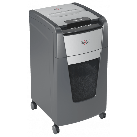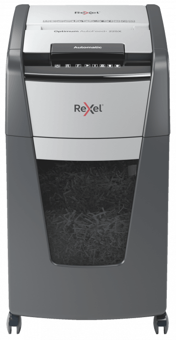 Niszczarka automatyczna do papieru Optimum AutoFeed+ 225X jednorazowo niszczy automatycznie do 225 kartek A4 (80 gsm), tnąc arkusze na konfetti (o wymiarach 4 x 26 mm), co zapewnia poziom bezpieczeństwa P-4. Wyposażona jest w automatyczny podajnik i 60-litrowy pojemnik na ścinki, co sprawia, że idealnie nadaje się do użytku biurowego. Nie wymaga ręcznego podawania papieru ani wcześniejszego usuwania zszywek i spinaczy - ta automatyczna niszczarka całą pracę wykona za Ciebie.