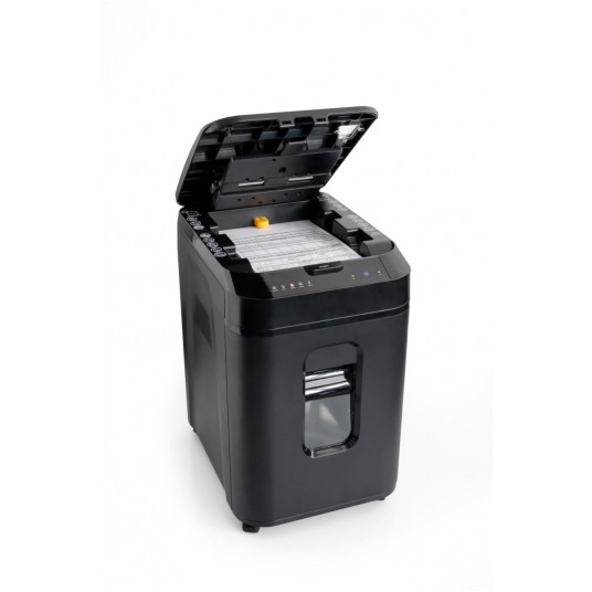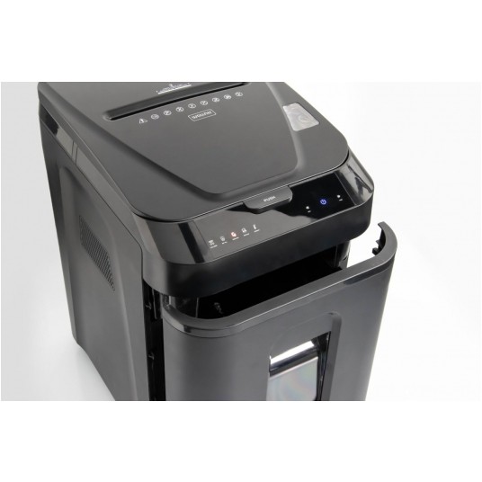 - szerokość wejścia: 220 mm - wielkość ścinka: 2×12 mm - ilość niszczonych kartek (A4/ 80g): 10 - poziom bezpieczeństwa DIN 66399: P-5/ T-5 - niszczy: papier, karty plastikowe zszywki, małe spinacze - pojemność kosza: 32 l - wymiary: 580x466x356 mm - automatyczny podajnik papieru na 160 kartek - funkcjonalny panel dotykowy uruchamiający wskazaną funkcję urządzenia - przycisk otwierający pokrywę podajnika - wysuwany pojemnik na ścinki - zerowy pobór prądu w trybie czuwania – automatyczne przejście w tryb stand-by - okno w obudowie umożliwiające kontrolę napełnienia kosza - cichy silnik przystosowany do pracy ciągłej do 30 minut lub do 60 minut przy auto podajniku - automatyczny start/stop i funkcja cofania (autoreverse) - zabezpieczenie silnika przed przegrzaniem - obudowa na kółkach - gwarancja: 2 lata