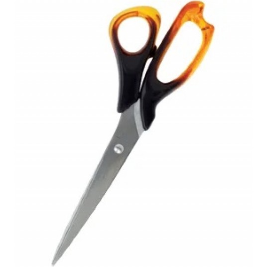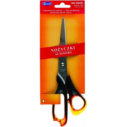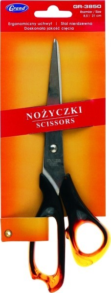 – wysokiej jakości nożyczki z nierdzewnej, hartowanej stali – ostre końcówki nożyczek umożliwiają precyzyjne wycinanie – uchwyty z tworzywa sztucznego w kolorze bursztynowym – rozmiar: 8,5" (21,5 cm)