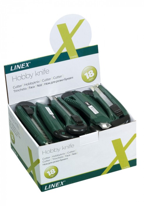 - ergonomiczna obudowa - łamane, wymienne ostrze ze stali nierdzewnej - przycisk blokujący pozycję ostrza - prowadzenie ostrza wzmocnione metalową szyną - długość noża: 15,5 cm