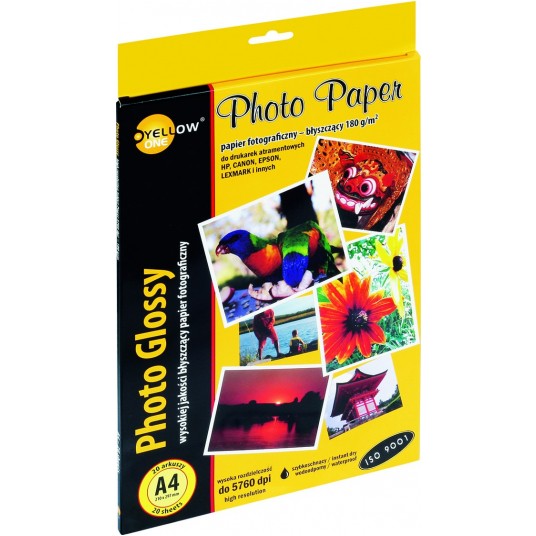 – specjalna powłoka o brylantowej bieli zapewnia idealne wydruki fotograficzne w naturalnych kolorach – wodoodporny i szybkoschnący – zdjęcia wyróżniają się ostrością oraz imponującym kontrastem – rodzaj papieru: błyszczący – do drukarek atramentowych – zgodny z normą ISO 9001 – maksymalna rozdzielczość druku: 5760 dpi – format A4 – 180 g/m2 – opakowanie zawiera 20 arkuszy