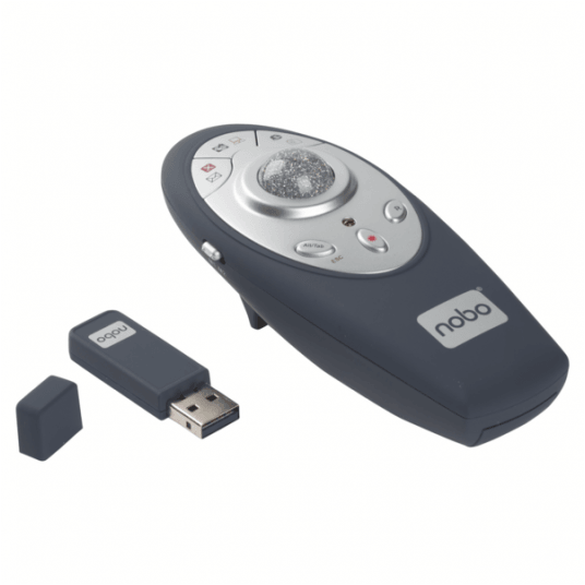 Prowadź dynamiczne prezentacje multimedialne, posługując się przyciskiem pełniącym funkcję wskaźnika laserowego i bezprzewodowej myszy. Wyposażony w wiele funkcji wskaźnik z czerwonym laserem ma możliwość przewijania stron w górę i otwierania aplikacji z dowolnego miejsca sali konferencyjnej. Wskaźnik laserowy Nobo P3 posiada zasięg do 15 m.