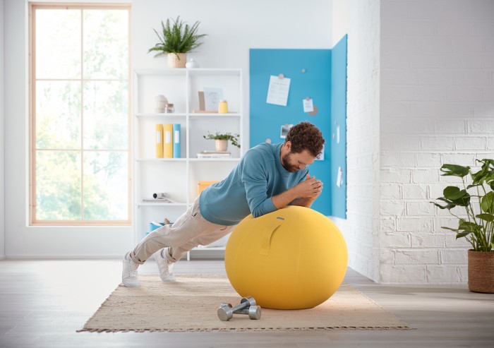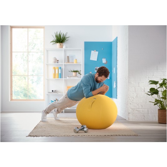 Idealnie sprawdzi się jako krzesło, zapewniając Ci ruch podczas siedzenia, lub jako przyrząd do ćwiczeń gimnastycznych. Można ją łatwo i szybko napompować dzięki dołączonej do zestawu ręcznej pompce. Ma wytrzymałą, wewnętrzną piłkę niezawierającą ftalanów, zdejmowany pokrowiec nadający się do prania ręcznego i mocny uchwyt ułatwiający przenoszenie. Średnica 65 cm.