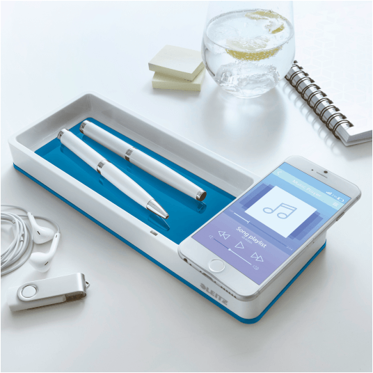 Piórnik Leitz WOW dwukolorowy z ładowarką indukcyjną biało-niebieski