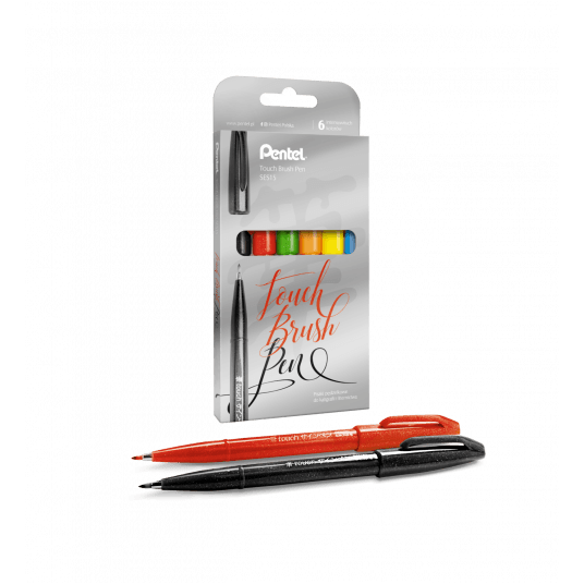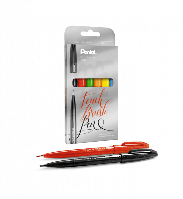 Zestaw pisaków / pędzelków do kaligrafii i liternictwa dla początkujących użytkowników. Znany w mediach społecznościowych jako “Pentel Touch Brush Pen”. Do tworzenia nowoczesnych, modnych liter, napisów i ilustracji. Elastyczna, pędzelkowa końcówka, pozwala na pełną kontrolę nad grubością i kształtem linii. Zestaw zawiera 6 kolorów - czarny, czerwony, niebieski, zielony, pomarańczowy i żółty.
