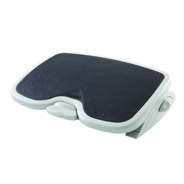 - utrzymuje nogi na podwyższeniu zapewniając lepszą pozycję i krążenie podczas pracy przy biurku oraz zmniejszając nacisk na dolną część pleców - nachylenie od 0 do 20° i blokada kąta nachylenia zapewniają dodatkowy komfort - blokada kąta nachylenia i regulacja wysokości od 3,5” do 5” - przycisk umożliwiający zmianę ustawień stopą - teksturowany panel zapobiega ślizganiu się stóp - wytrzymała konstrukcja - wymiary: 45 x 35 cm