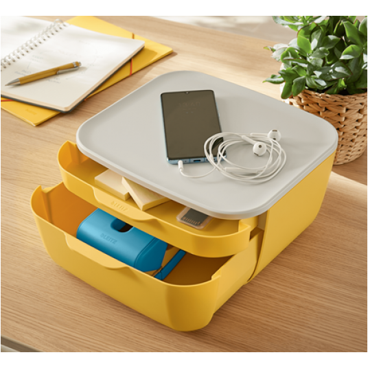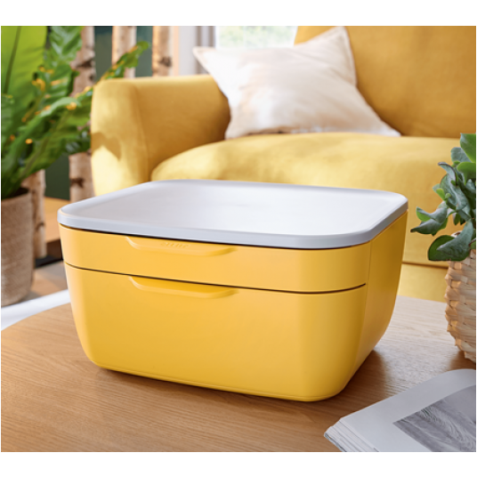 - schowasz w nim niezbędne na co dzień rzeczy, takie jak długopisy, kable, zeszyty, ale także żywność w kuchni - jedna mała i jedna duża szuflada - rozmiar: 27,5 cm szer., 25 cm gł., 14,5 cm wys.