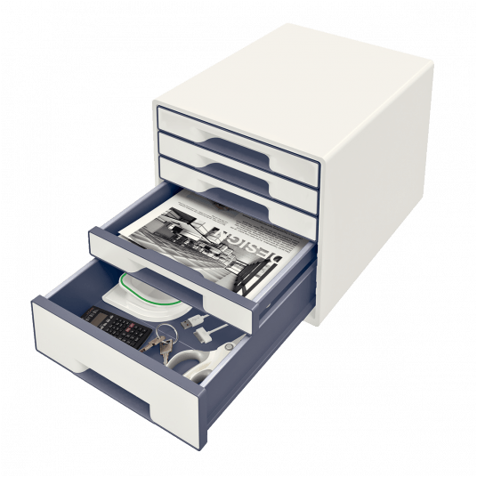Pojemnik z szufladkami Leitz WOW dwukolorowy biało-szary