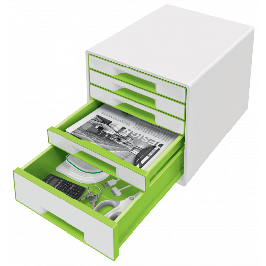 Pojemnik z szufladkami Leitz WOW dwukolorowy biało-zielony