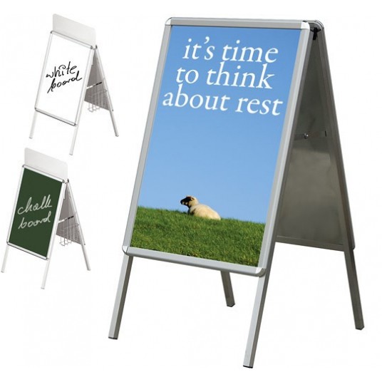 - dwustronna tablica zatrzaskowa w profilu aluminiowym - system zatrzaskowy umożliwia szybką i łatwą wymianę grafiki - rama aluminiowa anodowana 32 mm - plastikowe, zaokrąglone głowice w kolorze srebrnym - grafika zabezpieczona folią antyrefleksyjną - w opcji dostępne: tablica na logo (dla formatu A1) oraz praktyczny koszyk na ulotki - format: B1 - wymiary: 700 x 1000 mm