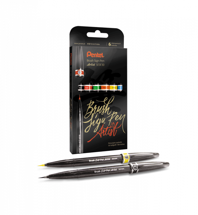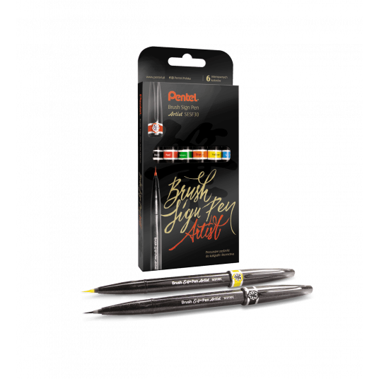 Zestaw 6-ciu precyzyjnych pędzelków do kaligrafii dla zaawansowanych użytkowników. Idealny do komiksów i rysunków (w tym miniaturowe ilustracje, detale). Wyjątkowo cienka, elastyczna i jednocześnie miękka końcówka. Grubość linii zależna od siły nacisku i kąta nachylenia końcówki. Zestaw zawiera 6 kolorów - czarny, niebieski, brązowy, szary, różowy i fioletowy.
