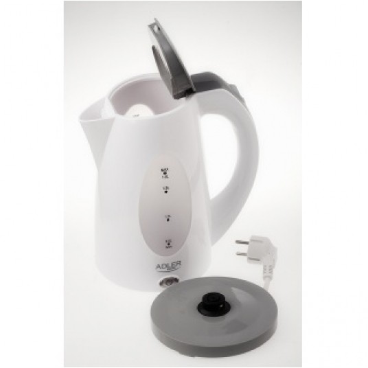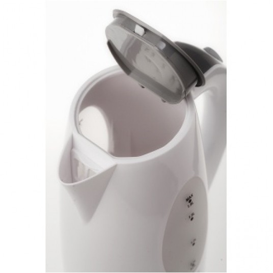 Czajnik rodzinny, pojemność min. 0,5 l, obrotowa podstawa i płaskie dno, nowoczesne wzornictwo, wskaźnik poziomu wody z podziałką, filtr zatrzymujący osady wapnia, grzałka ze stali szlachetnej, automatyczne wyłączanie po zagotowaniu wody, lampka kontrolna, rok gwarancji
