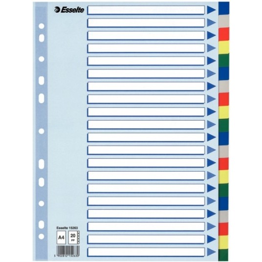 Przekładki plastikowe Esselte PP A4 kolorowe 20 ark.