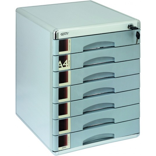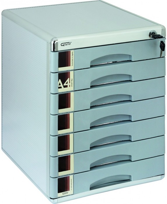 – metalowa – zamykana na klucz: wszystkie szuflady – przydatne w realizacji przepisów RODO – 7 szuflad A4 – okna opisowe – wymiary: 408 x 347 x 300 mm