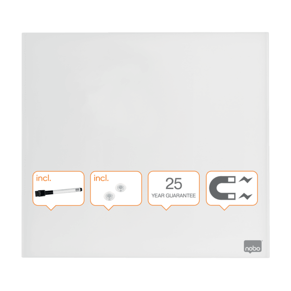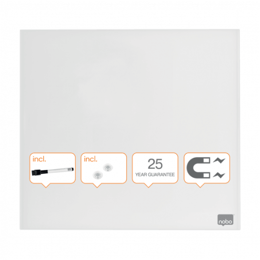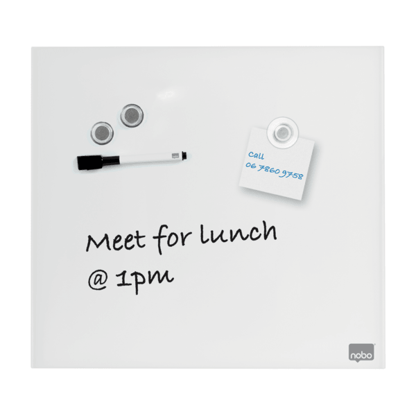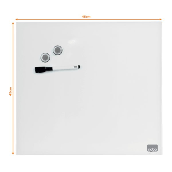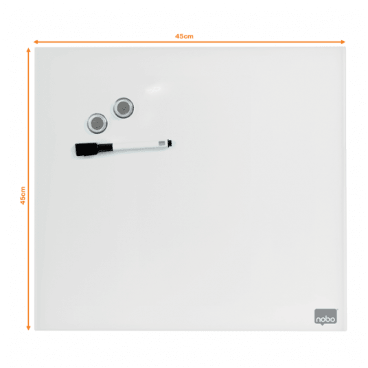 Szklana, bezramowa tabliczka Nobo łącząca stylowe wzornictwo z funkcjonalną powierzchnią suchościeralną to doskonałe narzędzie do zapisywania notatek. Magnetyczna szklana powierzchnia zapewnia najwyższą odporność na plamy i zadrapania, a niewielki rozmiar idealnie sprawdzi się do zapisywania notatek czy wiadomości podczas pracy w domu i w biurze. Po prostu: zapisz coś, zetrzyj i napisz kolejną notatkę. W zestawie z markerem. Wymiary 450 x 450 mm.