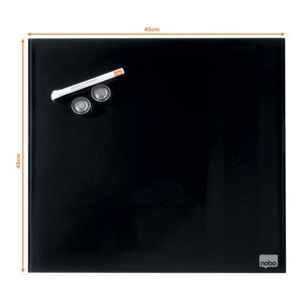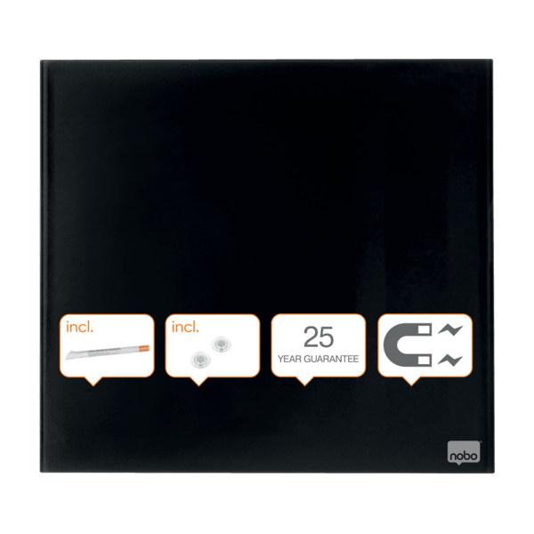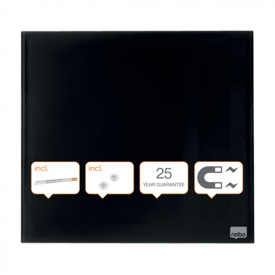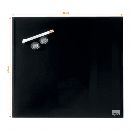 Szklana, bezramowa tabliczka Nobo łącząca stylowe wzornictwo z funkcjonalną powierzchnią suchościeralną to doskonałe narzędzie do zapisywania notatek. Magnetyczna szklana powierzchnia zapewnia najwyższą odporność na plamy i zadrapania, a niewielki rozmiar idealnie sprawdzi się do zapisywania notatek czy wiadomości podczas pracy w domu i w biurze. Po prostu: zapisz coś, zetrzyj i napisz kolejną notatkę. W zestawie z markerem. Wymiary 450 x 450 mm.