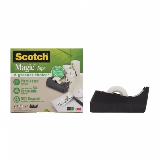 Taśmy klejące Scotch Magic Greener Choice 19 mm x 33 m (3 szt.) z podajnikiem z recyklingu