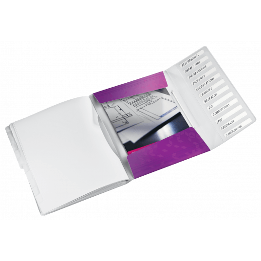 Teczka segregująca PP Leitz WOW z 12 przekładkami fioletowa metaliczna