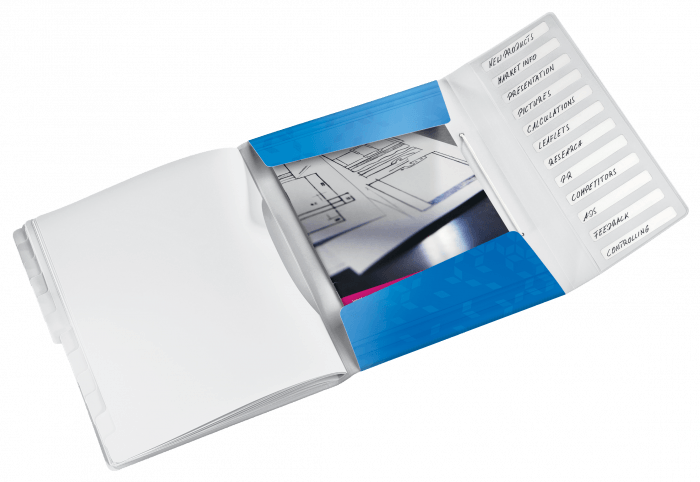 Teczka segregująca PP Leitz WOW z 12 przekładkami niebieska metaliczna