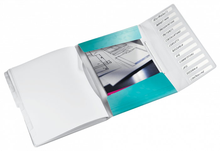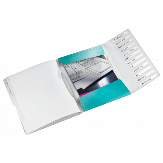 Teczka segregująca PP Leitz WOW z 12 przekładkami turkusowa metaliczna