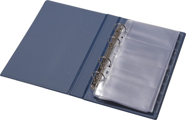 - wykonane ze skóropodobnego winylu Wizytownik na 96 wizytówek - posiada 12 wgrzanych koszulek z wysokoprzezroczystej PVC Wizytownik na 200 wizytówek - zawiera 9 koszulek z indeksem i 16 bez indeksu wpinanych w ring 4R