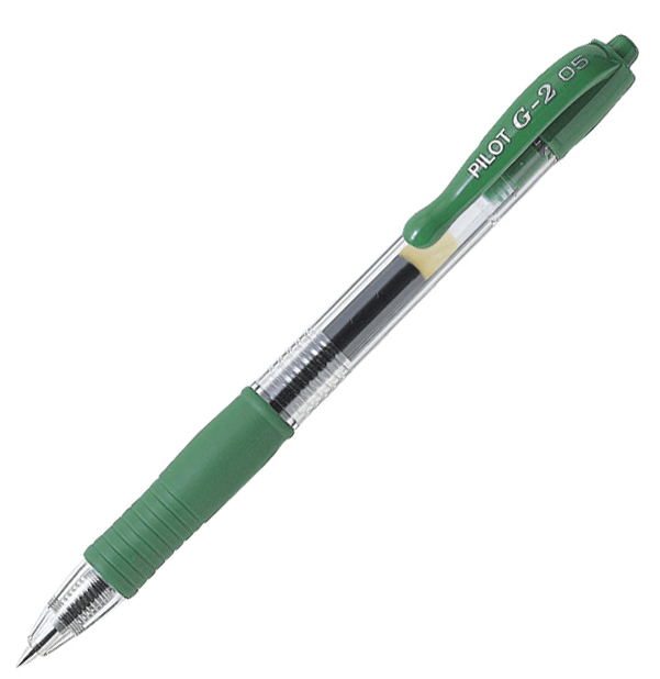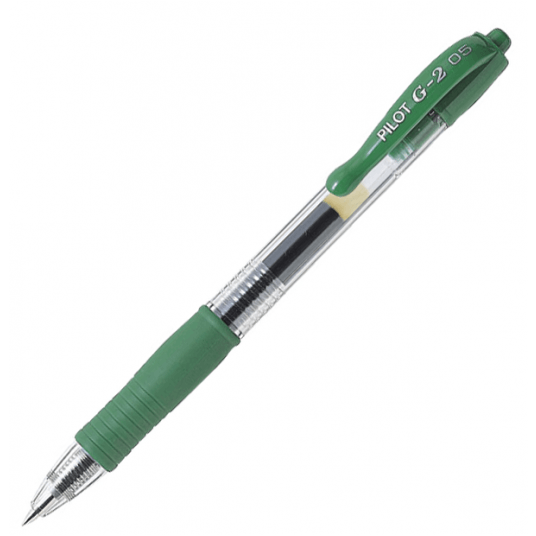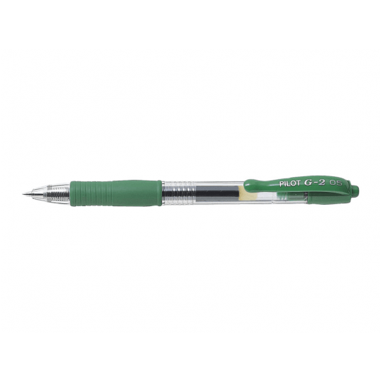Automatyczny długopis żelowy z wymiennym wkładem i gumowym, wygodnym uchwytem. Doskonale nadaje się do opisywania faktur. Posiada wyjątkowo nasycony pigment, dzięki czemu kolory są żywe i wyraziste. Napisany długopisem G-2 tekst szybko zasycha i nie rozmazuje się. Grubość linii pisania 0,25 mm, długość linii pisania 1300 m.