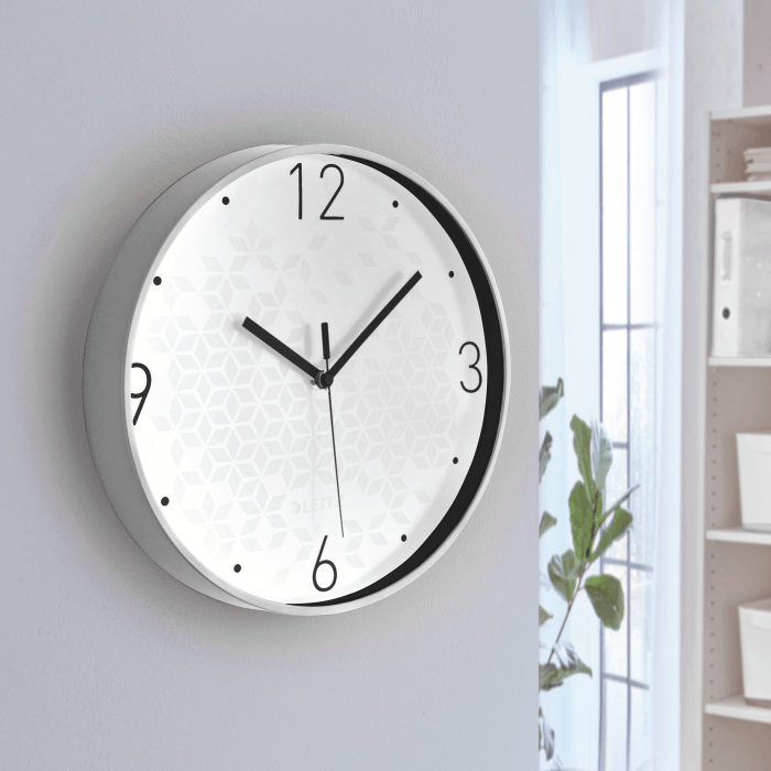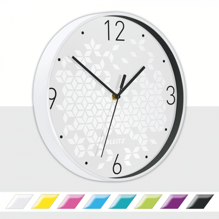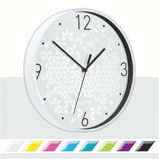 - cichy zegar ścienny w atrakcyjnej kolorystyce WOW. Dwukolorowa oprawa o średnicy 29 cm wykonana z wytrzymałego tworzywa sztucznego zestawiona jest ze szklanym frontem. Zegary z bezgłośnie poruszającymi się wskazówkami idealnie nadają się do biur, pomieszczeń szkoleniowych czy sypialni