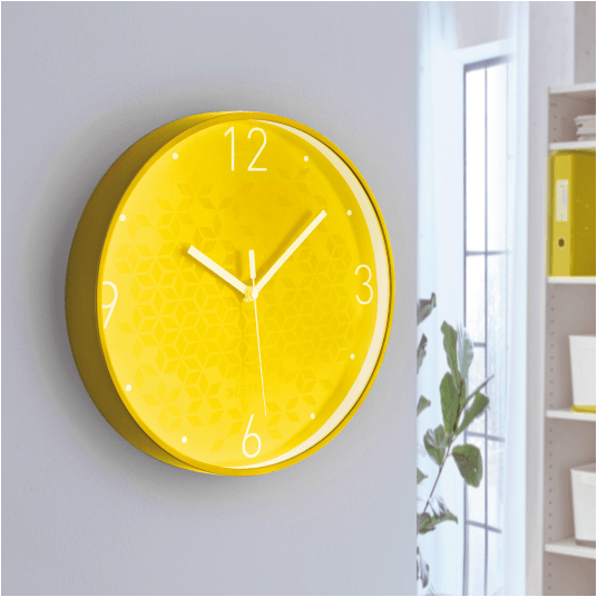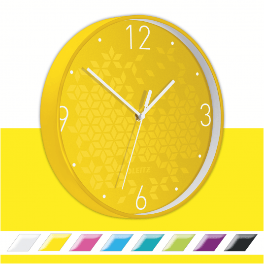 - cichy zegar ścienny w atrakcyjnej kolorystyce WOW. Dwukolorowa oprawa o średnicy 29 cm wykonana z wytrzymałego tworzywa sztucznego zestawiona jest ze szklanym frontem. Zegary z bezgłośnie poruszającymi się wskazówkami idealnie nadają się do biur, pomieszczeń szkoleniowych czy sypialni