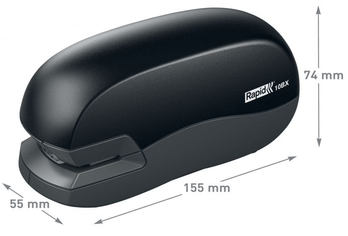 - zszywają do 10 kartek (10BX) lub 20 kartek (20EX) - wygodne w obsłudze jedną ręką - poręczne w użyciu również w ruchu - zasilane 4 bateriami (10BX) lub zasilane z sieci (20EX, zasilacz w komplecie) - używane ze zszywkami Rapid Standard 24/6 i 26/6 - głębokość wsuwania kartek: 10 mm - 2 lata gwarancji przy używaniu zszywek Rapid