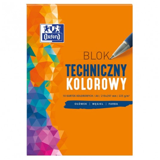 Blok techniczny Oxford A4 10 kartek 225 g kolorowy