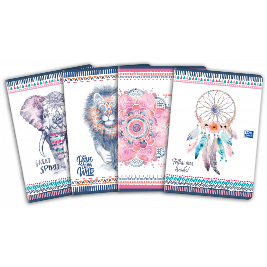 • Eleganckie, fantazyjne grafiki w stylu Boho • Twarda oprawa pokryta aksamitnie miękką w dotyku folią soft touch • Śnieżnobiały i idealnie gładki papier Optik Paper o gramaturze 90 g/m2