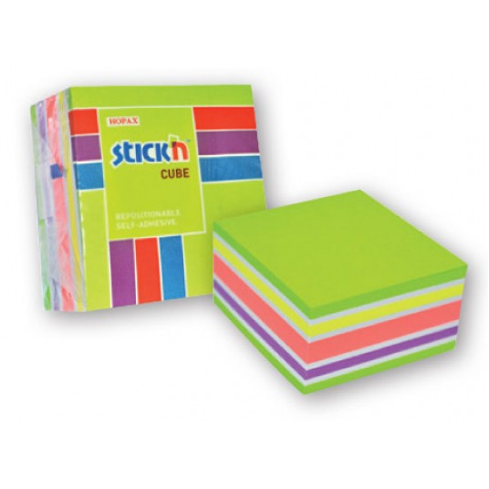Kostka samoprzylepna Stick'n 76 x 76 mm mix kolorów neonowych zielony, żółty różowy, fioletowy i biały