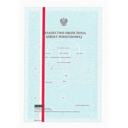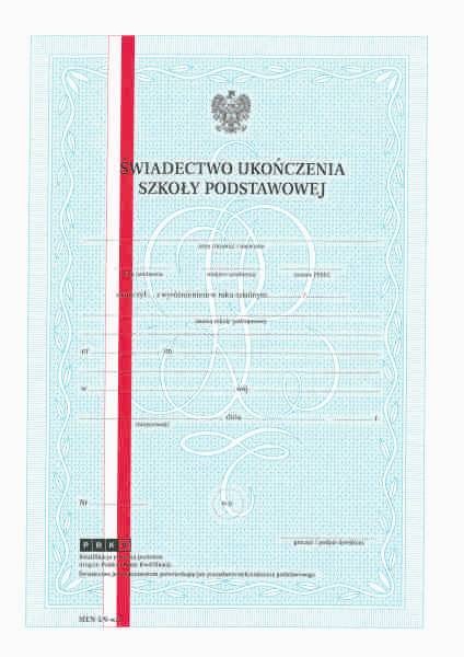 MEN-I/9-w/1 - Świadectwo ukończenia szkoły podstawowej dla dzieci i młodzieży z wyróżnieniem zawierające znak graficzny PRK II Typograf A4 (2 str.)
